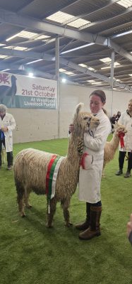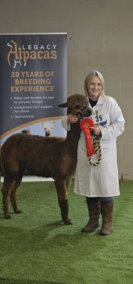 We were delighted with our results, firstly with Popham Olivia winning **Intermediate Female Brown Huacaya** and **Champion Brown Female**!